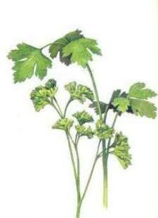 In ancient time wreaths were used to ward off drunkenness—though proof of their efficacy in that capacity is scarce. Today, this slighs parsleytly peppery, fresh-flavored herb is more commonly used as a flavoring and garnish. Though there are more than 30 varieties of this herb, the most popular are curly-leaf parsley and the more strongly flavored Italian or flat-leaf parsley. Fresh curly leaf parsley is widely available year-round, whereas Italian parsley must sometimes be searched out in gourmet produce markets. Parsley is sold in bunches and should be chosen for its bright-green leaves that show no sign of wilting. Wash fresh parsley, shaking off excess moisture, and wrap first in paper towels, then in a plastic bag. Refrigerate for up to a week. Dried parsley is available in the spice section of most supermarkets but bears little resemblance to the flavor of fresh. Parsley is an excellent source of vitamins A and C.