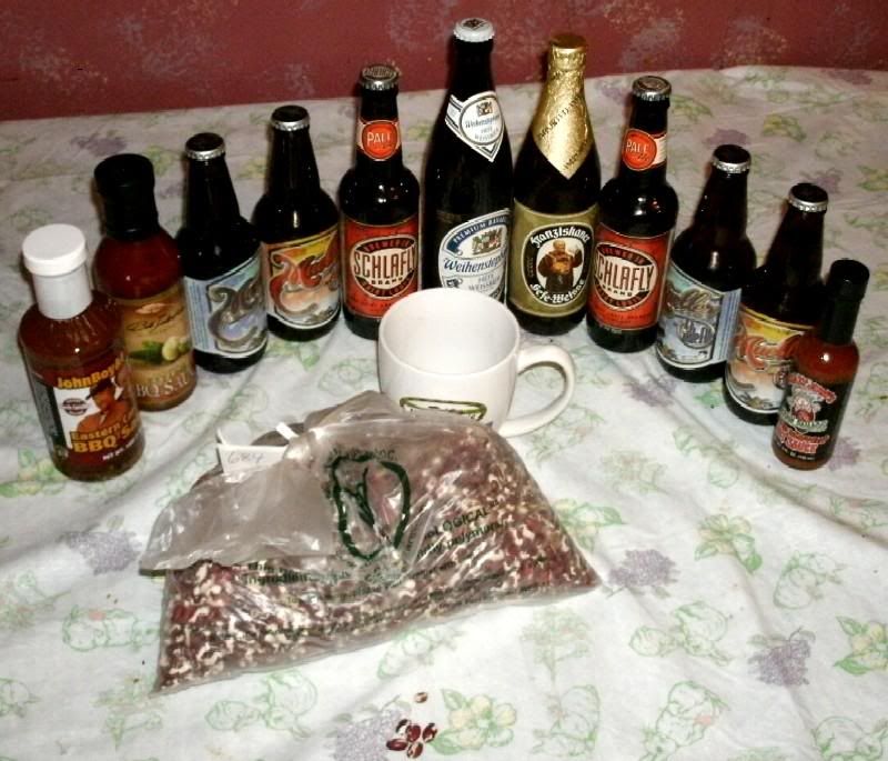 ![]() lots of great beers (microbrew, pale ale and wheat beer), a huge bag of ansazi beans and soe other goodies!