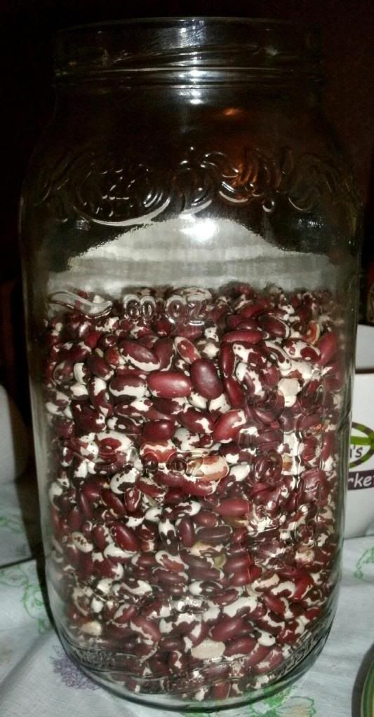 the anasazi beans went into a great big pickle jar - don't they look nice?