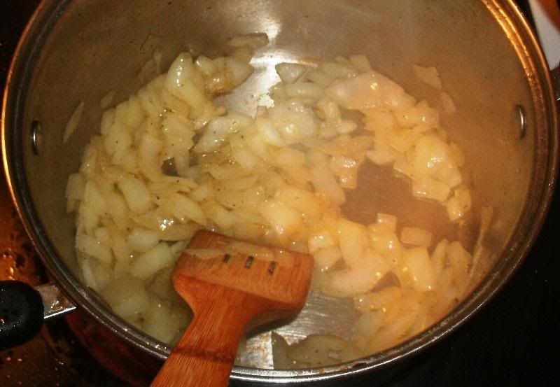 and set them aside on a platter. meanwhile, in a 4-quart "kettle," i sautéed the onion until "almost" golden brown:
