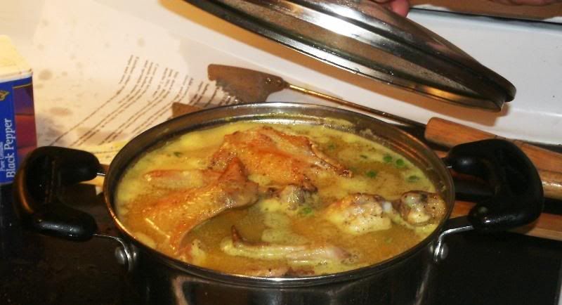 and reduced the heat to just barely above the "off" position in order to simmer for half an hour, occasionaly stirring as best as i could with the big pieces of chicken in the relatively small pot.