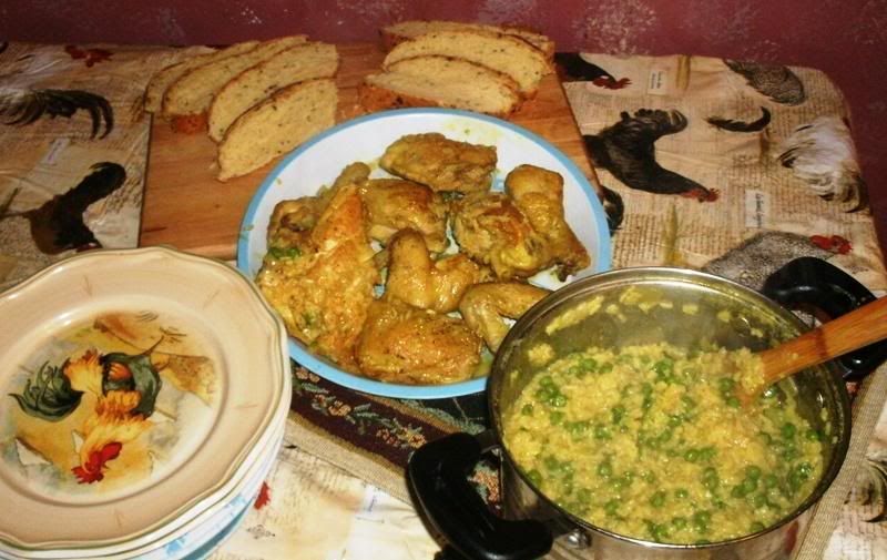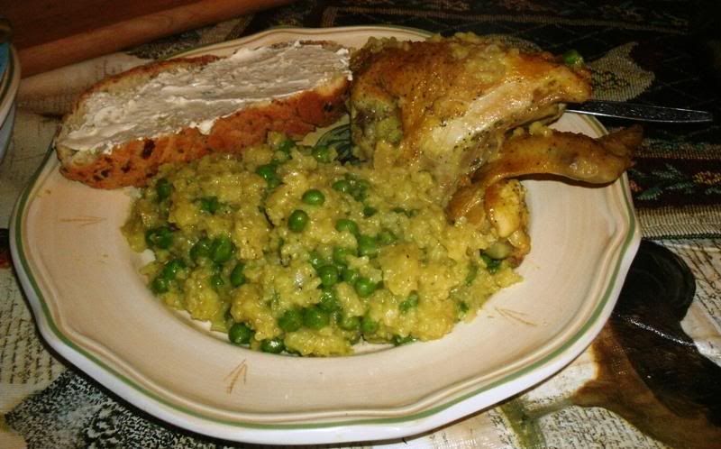 we served this peasant supper with some cottage cheese bread since my son is still trying to correct whatever happened last time he made it. unfortunately, it turned out about the same, except dry and crumbly; even though we brought the internal temp up to 205, it also seemed a little "undone" in the center. having said that, it tasted wonderful - it simply wasn't "perfect!" looks like dad's going to have to make another loaf and show him how it's done! i still remember the first loaf i made - it may not have been perfect, but it was very close!