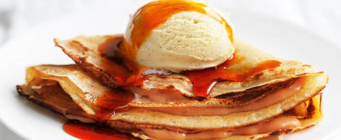 Blood Orange Curd Crepes with Ice-Cream & Burnt Orange Sauce