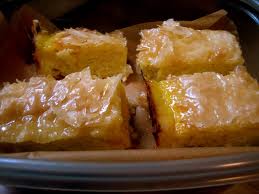 GALATOBOUREKO are a classic pastry filled prepared with Phyllo and dressed with a lemon zest and lemon juice syrup.
