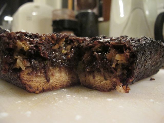 Making the base: baked base: topping mixed: topping on: Finished: Yummy and caramelised. Highly recommend that slice for something a little different. |