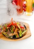 Muleskinner, Here is my friend Ventura Rocha´s Fajita Recipe for beef ( flank or skirt steak; the cadera or hip is commonly employed in Mexico. ) ( For Mexican & Louisiana´s Cajun & Creole Products: www.casafiesta.com ) ![]() Beef Fajitas. Fotosearch Courtesy. ![]() Chicken Fajitas Wrapped in Tortillas Fotosearch. Ventura´s Fajitas de buey ( Ventura´s Fajitas of skirt or flank steak ) ... *** 1 kilo of skirt or flank steak ( cadera: the hip of the cattle ) 2 red bell peppers sliced in strips ( virutas ) 2 green or gold bell peppers sliced in strips ( virutas ) 4 large red magenta violet onions *** Corn or Wheat Tortillas ( hot in bread basket covered by napkins ) *** MARINADE: 100 ml. Extra virgin olive oil salt and freshly ground pepper ( black, white, rose and green or just black ) to taste 2 tblps. fresh lime juice 2 tblsps. Tequila Aged, or Aged Rum ( amber colored ) fresh minced cilantro 4 cloves minced garlic 1/2 tsp. Sweet Smoked Paprika ( La Vera Pimentón ) Optional: 1/2 tsp. Liquid smoke 1 large magenta red violet ( cebolla morada ) onion minced finely Optional: 1 tsp. Worcestshire Lea & Perrins Chili Peppers in Adobo in Jar or dry chili peppers of choice & heat tolerance 1/2 tsp. Chili Powder a sprinkle of red chili flakes or 1 or 2 dry tiny red chili peppers Beef stock 1) The first step, is to rub the meat with the extra virgin olive oil, salt, freshly ground black pepper and place in a large roasting pan or pot for marinating overnight; NOTE: IF MARINADING UNSLICED, MARINATE THE 1 KILO OVERNIGHT; IF USING SLICES FOR MARINATING, THEN, 3 HOURS SHOULD BE PLENTY. 2) prepare the marinade: combine Evoo, lime juice, garlic, the chili peppers, the tequila or rum; and season with a pinch of salt and dash of freshly ground pepper & then add the rest of the ingredients. Combine them well and place the olive oil rubbed meat into the vessel for overnight marinating. 3) Turn the meat over, prior to retiring for the evening 4) Pre heat oven to 160 degrees centigrade 5) Slice the bell peppers, and the onions in strips 6) heat olive oil in a cast iron skillet or similar and sauté the onions 3 mins. and then the bell pepper strips until tender. Adjust salt and freshly ground pepper if you wish. 7) Now slice the meat into strips and sauté 2 to 3 mins. per side; on the bed of the onions and bell strips ( discard the marinade ) 8) Drain the meat and the vegetables and place the all in aluminum foil to keep warm 9) heat the Tortillas ( Mexican Bread ) ![]() Sizzling Hot Plate. SERVE WITH: GUACAMOLE; CACTUS OR CILANTRO SALSA, OR TOMATO CHILI PEPPER SALSA AND/OR PRIOR, PREPARE EXTRA FRESH BATCH OF MARINADE AND HEAT IN SAUCE PAN AND DRIZZLE UPON MEAT ... BEVERAGE: MEXICAN BLACK BEER OR MARGARITAS ... Enjoy, Margi. |