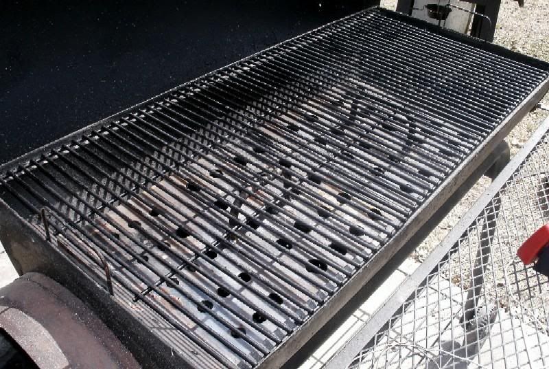 here's a shot of the RIVET-designed charcoal basket. this thing is just right for offset units in that it provides ample clearance for airflow underneath, while also providing more than enough froom for fuel and its rotation, if desired. as with the manifolds above, i strongly recommend them for their good design and also for their "bulletproof" construction.