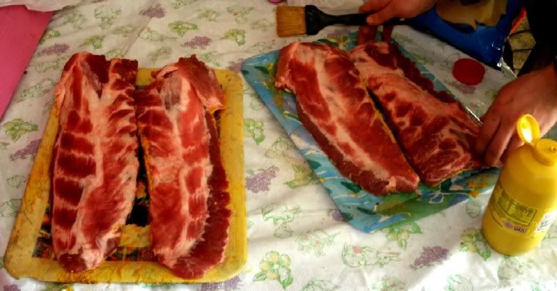 ![]() here's how the ribs looked before any cooking. they were fairly-well trimmed, but looking back, i should have done a little more trimming of the brisket. no big deal, they tasted great!