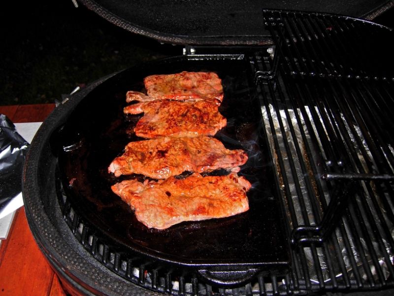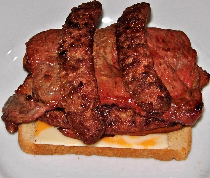 -Thin slices of steak.  I halved the width of 2 NY strips