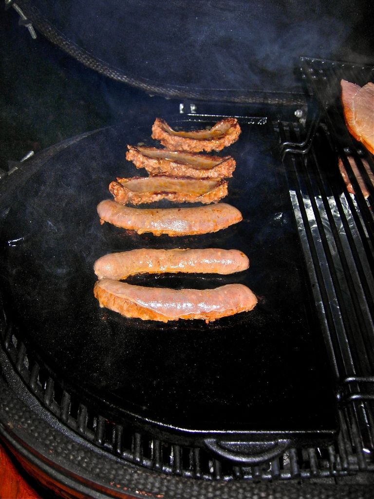 1 fresh and 1 smoked/cured sausage.  I used Linguica (great stuff) and 1 Mexican Chorizo so I wouldn’t have to go to