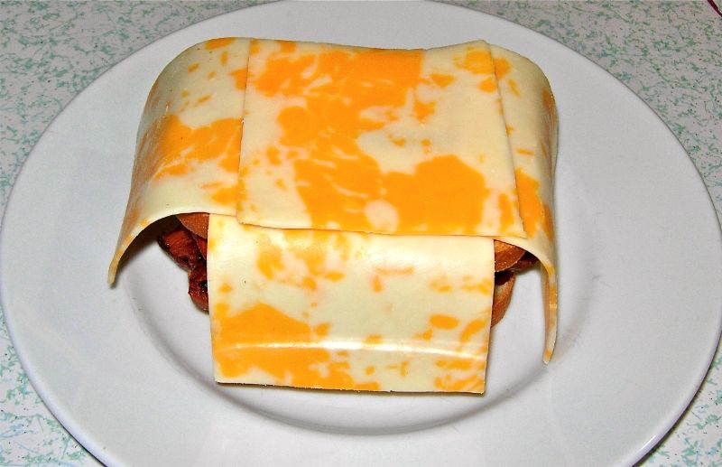 -Your favorite melty sliced cheese.  A minimum of 5 slices/sandwich.  I used 6 slices of combination sharp cheddars.