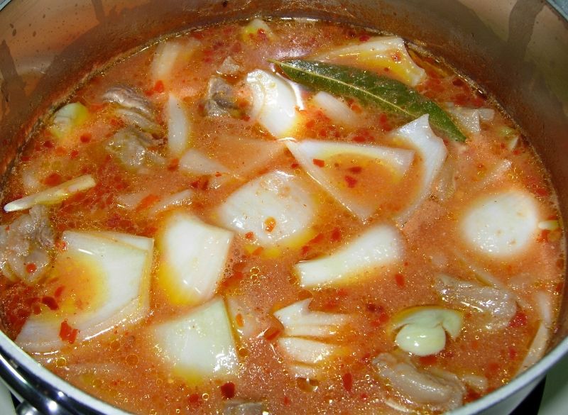 -Bits of meat(s) to add to the sauce for flavor.  This is a good place for chicken wings, bones, turkey bones etc.  I used