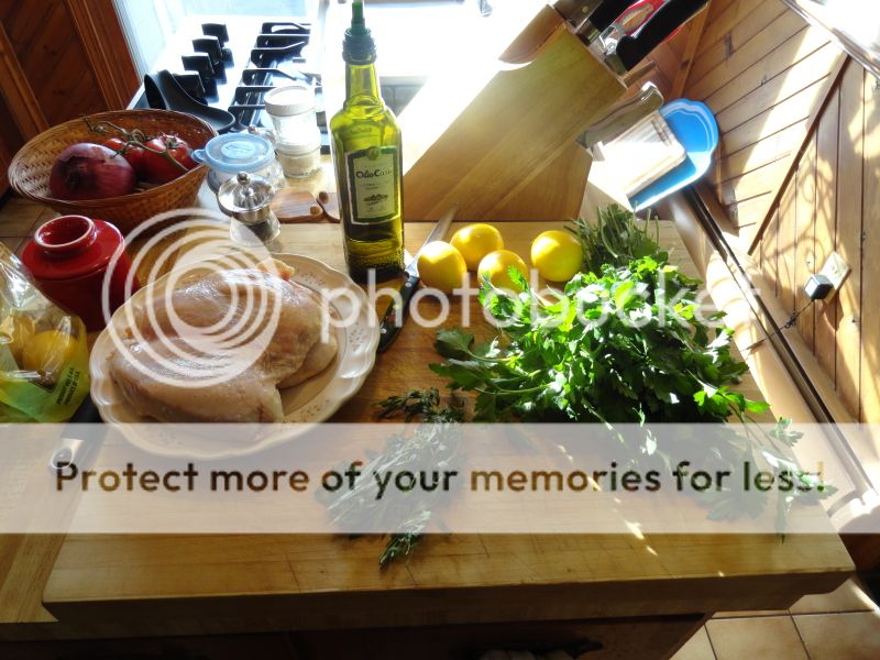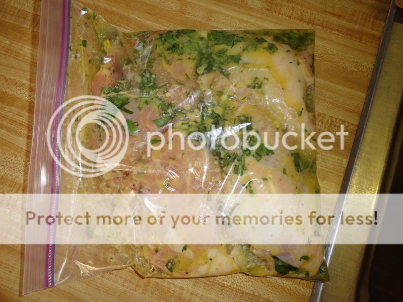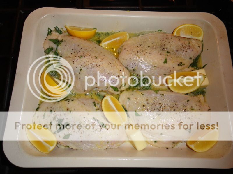 I grabbed some fresh tarragon and Italian parsley as well and got busy. ![]() I chopped up about three tablespoons of fresh tarragon, and two of parsley, added the zest and juice of four Meyer lemons, along with a tablespoon of finely pressed garlic and added about 1/3 cup of my very best extra virgin olive oil to that and whisked it all up. ![]() ![]() Let the chicken marinate about 90 minutes (turning it once) and heated the oven to 400°F. Removed the chicken from the marinade and patted it dry then brushed it with oil to help brown it. Popped it into the oven for about 45 minutes, gave it a ten minute rest and served it up with a tossed salad, rice pilaf and broccoli. ![]() ![]() This was quite tasty...definitely something I'll do again. If you've never tried Meyer lemons you are doing yourself a disservice...quite deifferent from what you would be used to. Tangy, but with a certain sweetness to them. I believe I'll pick up some more of them and make a batch of preserved lemons sometime next week. |