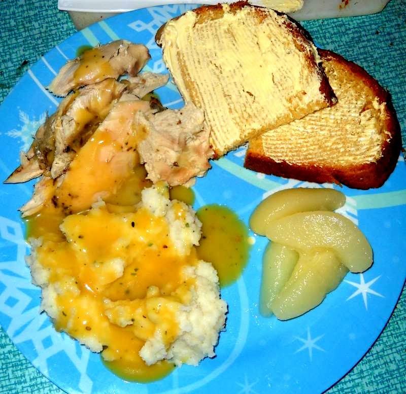 Remove casserole from oven and set on stove for at least 10 minutes - DO NOT OPEN. Meanwhile, toast the crusty bread. When toasted, put in basket, carve chicken and serve. Squeeze the deliciously soft garlic onto the buttered and crusty toasted bread and enjoy the chicken. Here we are, after browing on the stovetop and ready to go into the oven: