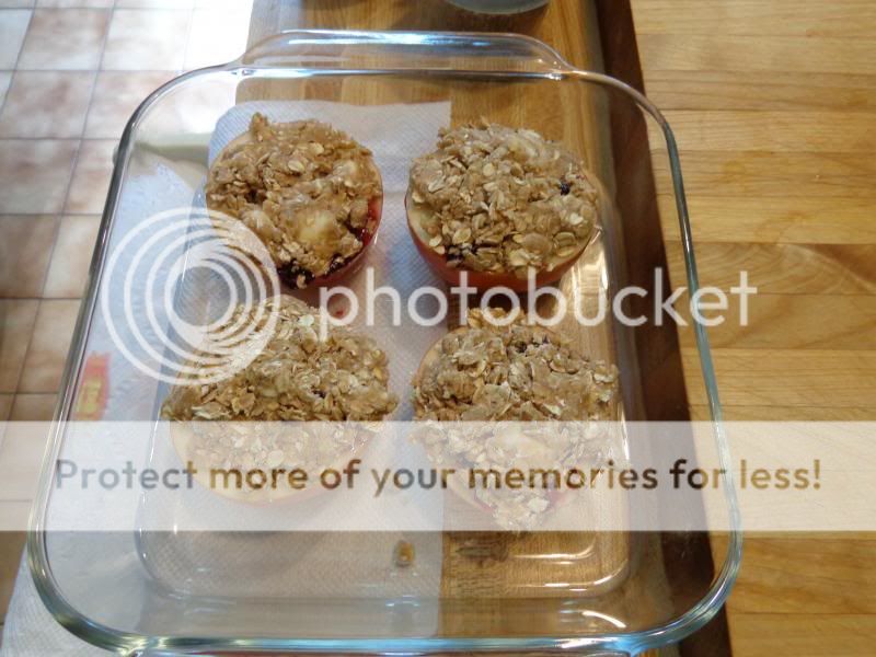 ere is my contribution to the dinner...our dessert of baked apples with crispy topping. This is an obvious ripoff of everybody's favorite "apple crisp" but I just could not resist.