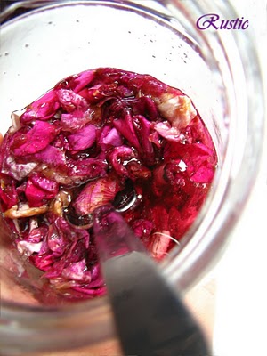 1) wash the roses thoroughly and remove the white bottoms off each petal and separate the petals