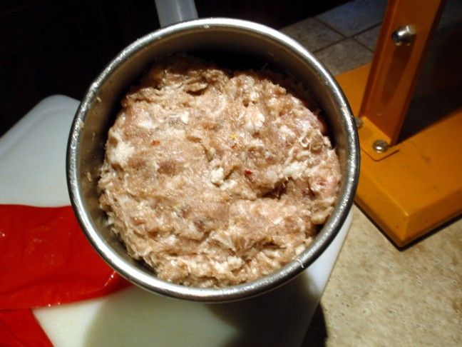 The recipe call for the ingredients to be mixed and stuffed, then put directly into the fermenting chamber. I wasn't comfortable with that so I mixed everything except the Bactoferm and put it in the frige to rest for 24 hours.