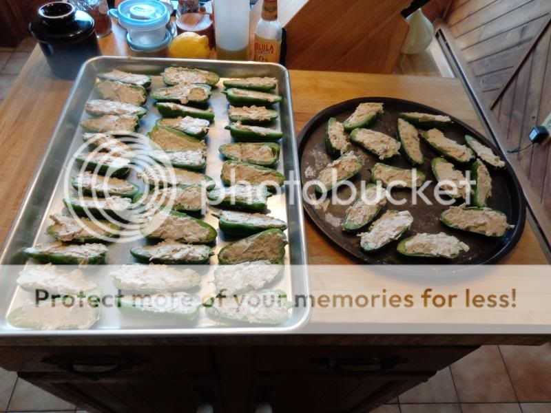 Mixed up some cream cheese with a shredded block of monterrey jack, some onion soup mix and Lea and Perrin's steak sauce, then filled up me canoes.