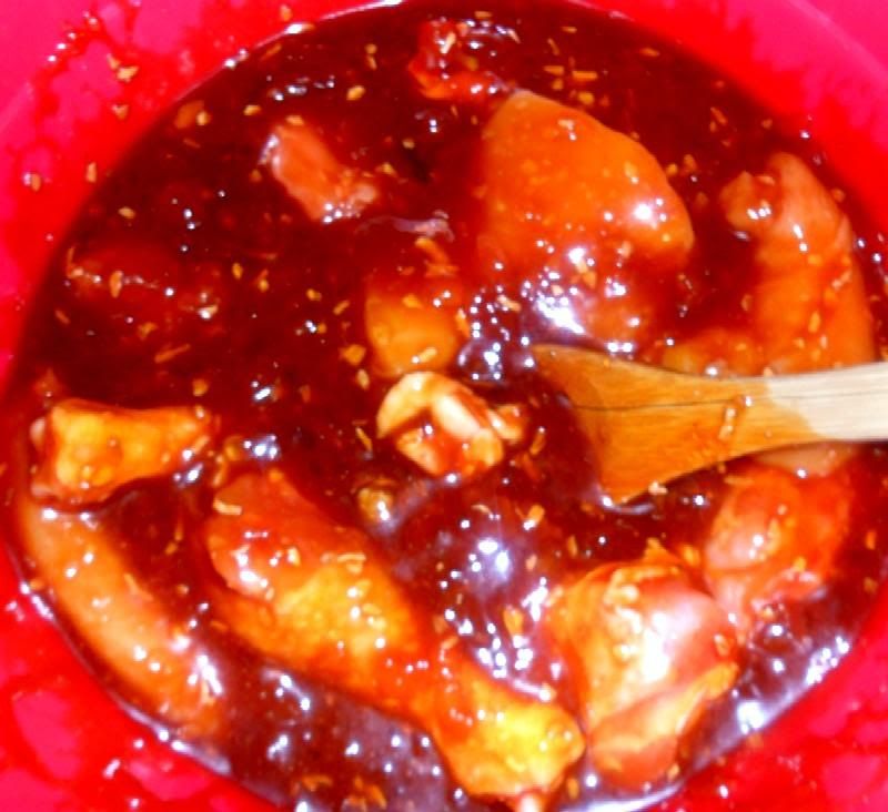 and tossed it all around before putting it in the fridge to marinate for 3 hours: