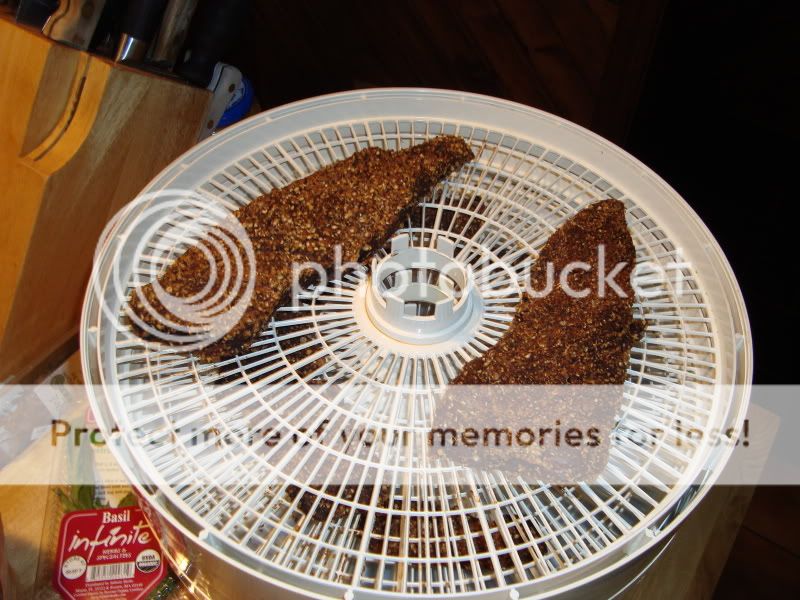 Here it is all drained and in the dehydrator...not sure how long it's going to have to go, it's about ¾" thick...we'll check back and see. ![]() Here it is after about 10 hours...taking the thin pieces off now, and leaving the thicker ones for a couple more hours.