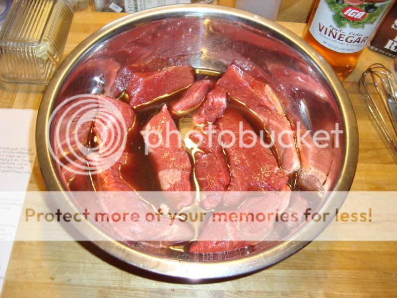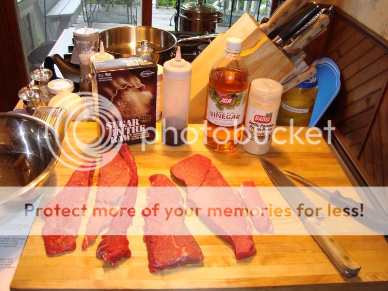 ![]() ![]() Mixed up the vinegar with the salt, sugar and garlic powder, and let the trimmed steak hang out for a while in there.