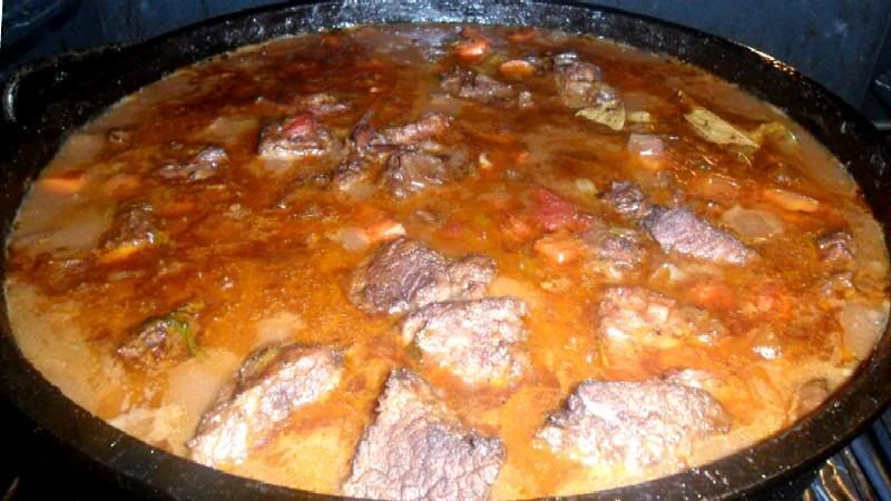 from here on out, it is very similar to carbonade. do the meat chunks the same, getting a good sear on them and letting the liquid cook down to the thick, rich stuff. early on in the process, when the moisture starts bleeding out of the chunks, add maybe half of the beef broth/stock. this will take some time to cook down, but boy, it is worth it! it dawned on me as i was adding the broth that i was adding it to a really good pre-existing stock, considering the soffritto and the juice that was coming out of the meat. i tasted the stock at various stages during the reducing, and the mild addition of salt and the hearty addition of black pepper really turned this into good stuff!