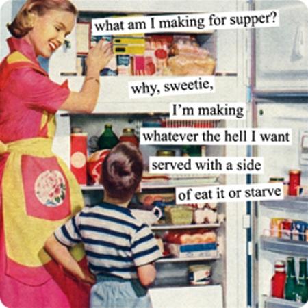i can certainly understand in some occasional situations and exceptions to the rule, and there also are a few friday nights when i prepare a scampi alla griglia or some other "nice" dinner for the beautiful but overworked mrs. tas, while the kids get a frozen pizza - but for the most part - the rule is "eat what's served, because the kitchen is closed."