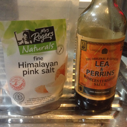 I seasoned to taste with salt, pepper and Worcester sauce - a good 'glug' (2-3 tablespoons for three steaks).