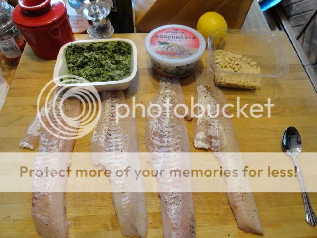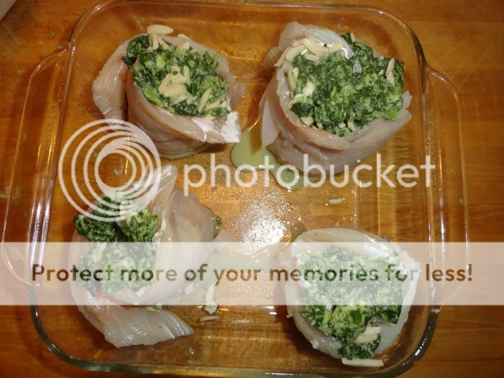 I had four fillets which I seasoned lightly with S&P. and then spread a bit of creamed spinach over them.
