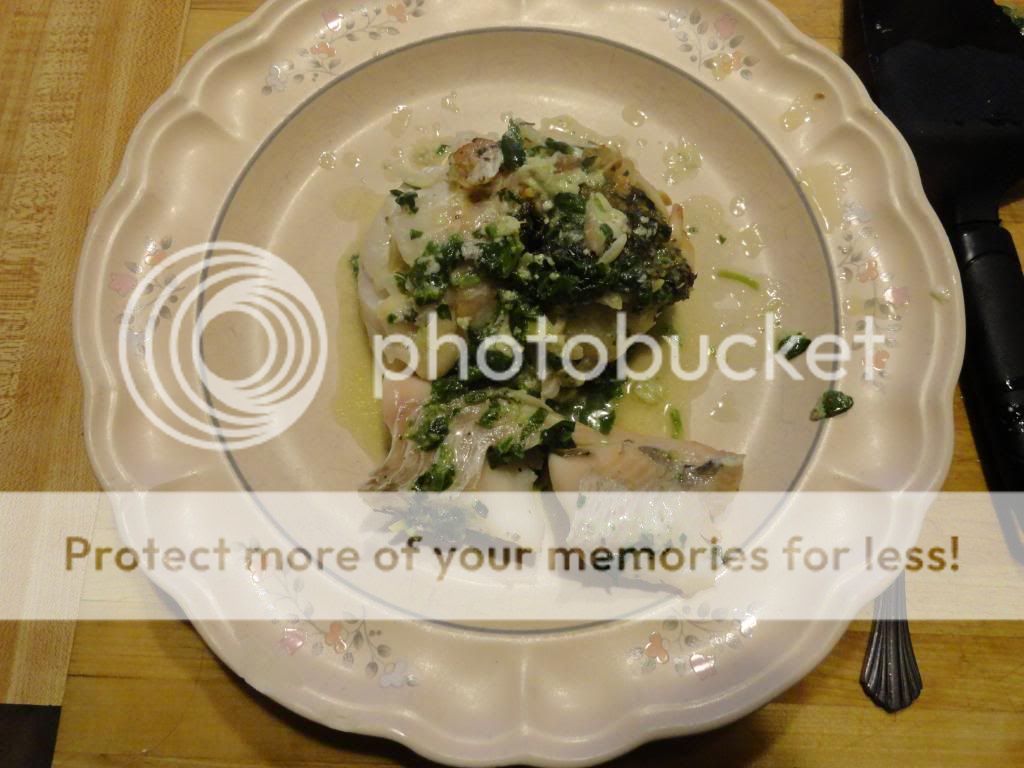 Sorry I didn't get a few better pics of the plated fish, but we were hungry, and it was perfectly done and falling apart a bit as I served, as is obvious in the photo above.