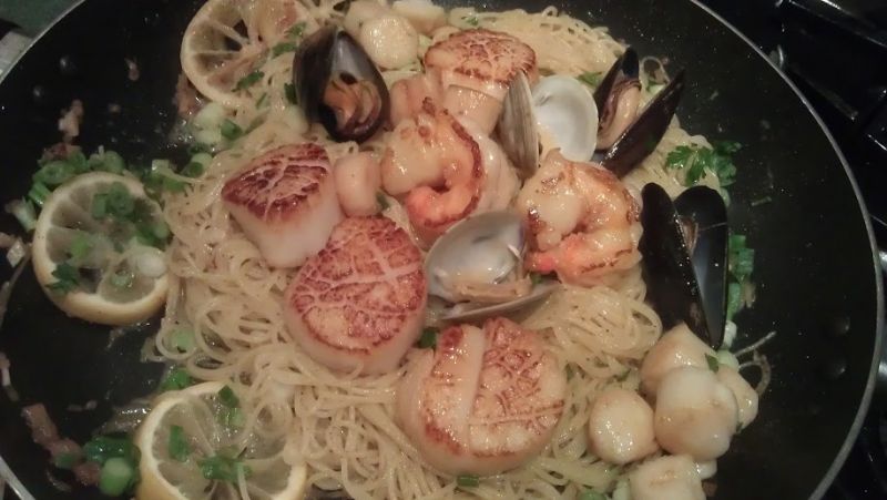 Here's a little seafood pasta from the other day (notice...no bay scallops Cry)  I had forgot...I did have some in there LOL